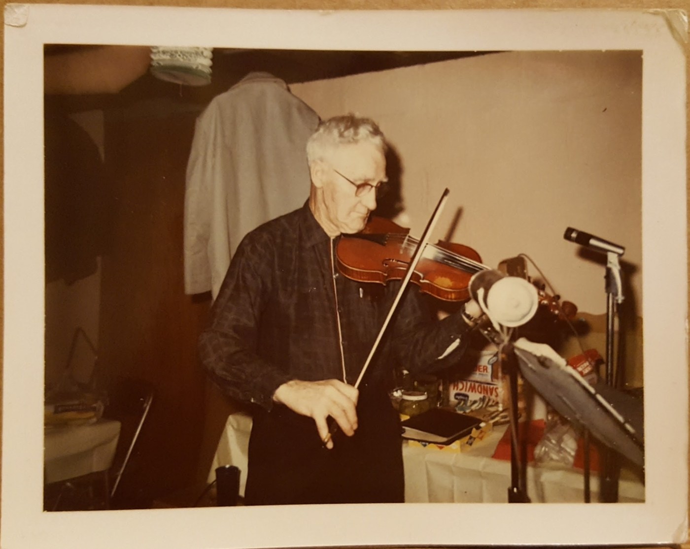 I remember one night we went up to Allen Fldermans to play and Delbert was driving and he stopped the car and I was in the back seat and I reached around the door, he decided to go further and he slammed the door on my fingers. It was the two front fingers on my left hand. He didn’t know I was sitting behind him. Here I was playing for a dance with two smashed fingers. A most difficult situation. Well I told them to get me some hot water, well they got it and it was really hot. I dipped them in hot water, it really did hurt, but I played for the dance. They didn’t hurt at all after I started to play and it was not very sore the next day.
